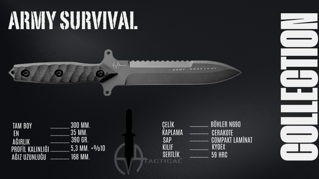 Tasarım sürecimizden üretim hattımıza kadar her aşamada; dayanıklılığı, işlevselliği ve güvenliği ön planda tutuyoruz. Her bir EVATACTICAL bıçağı; sahada karşılaşılabilecek en zorlu şartlara karşı koymak, görev sırasında sizi yarı yolda bırakmamak ve sizi her zaman desteklemek için üretildi.